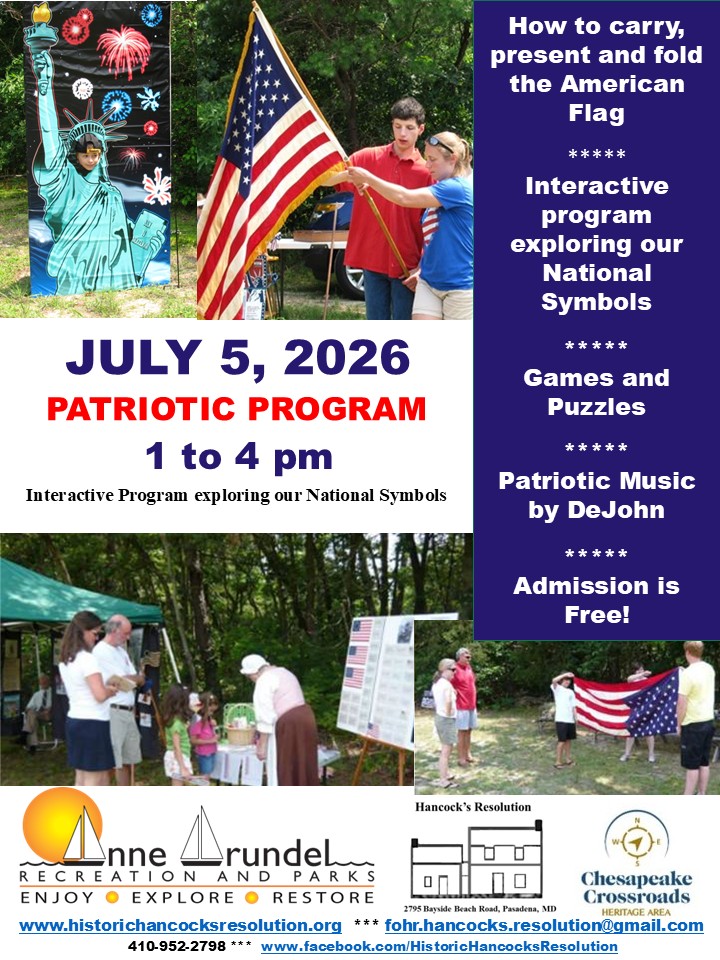 Patriotic Program for all ages; Patriotic music; historic flags; Interactive program exploring our National Symbols; from 1 pm to 4 pm Sunday.